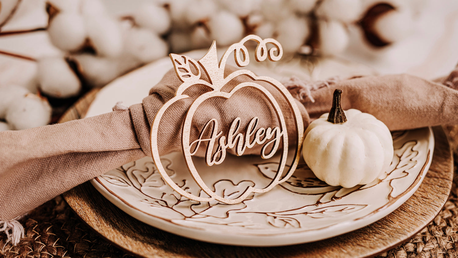 Thanksgiving Fall Collection: Personalized Wooden and Acrylic Name Tags Elevate your Thanksgiving...